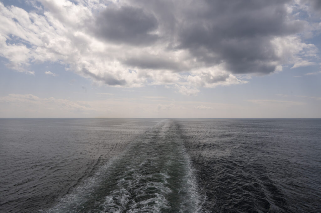 Looking astern of a ferry, to see the ocean behind us as we head to New Brunswick