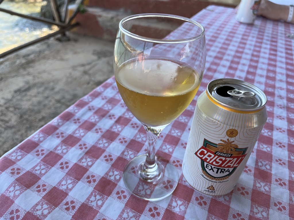 A quick stop for an ice cold Cristal cerveza at a small Cuban fishing village