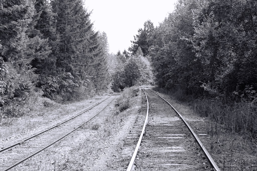 Parallel tracks of the Wellcox Spur and the Victoria Subdivision line near Chase River