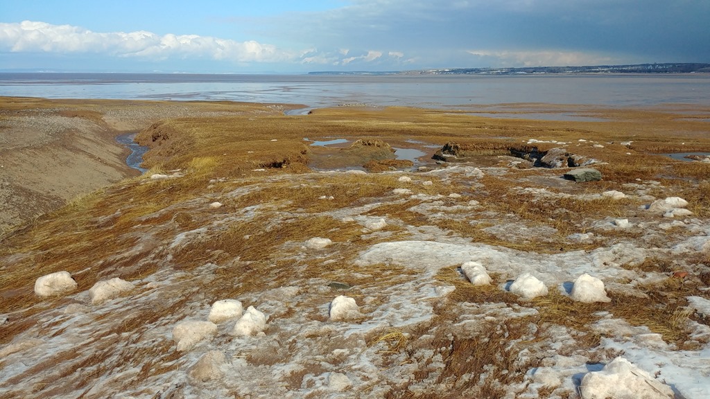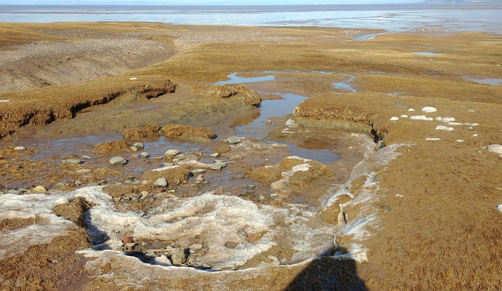One of the interesting aspects to this area is the channels that are carved into the silt and mud of the intertidal zone, and the ice that forms in the area. This is a good example of the force of the Minas Basin tides. and the