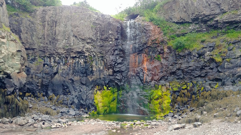 Baxters Harbour Falls are created by Frasers Brook dropping almost 100 feet at ebb tide.