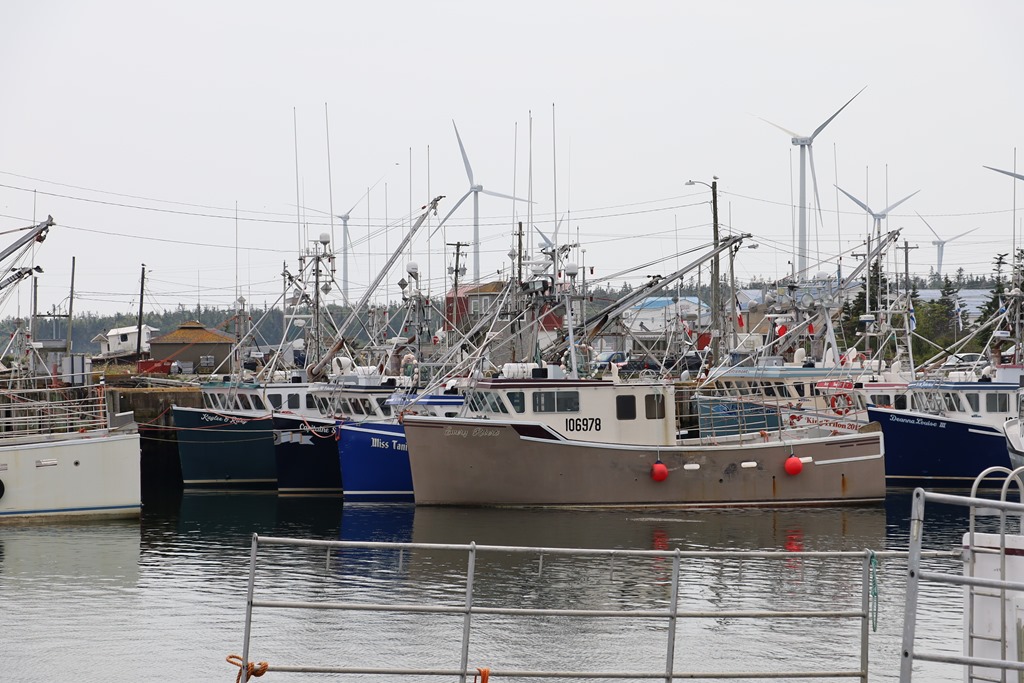 Fishing boats and wind turbine blades – West Pubnico, Nova Scotia