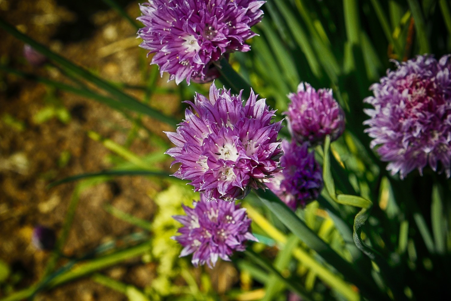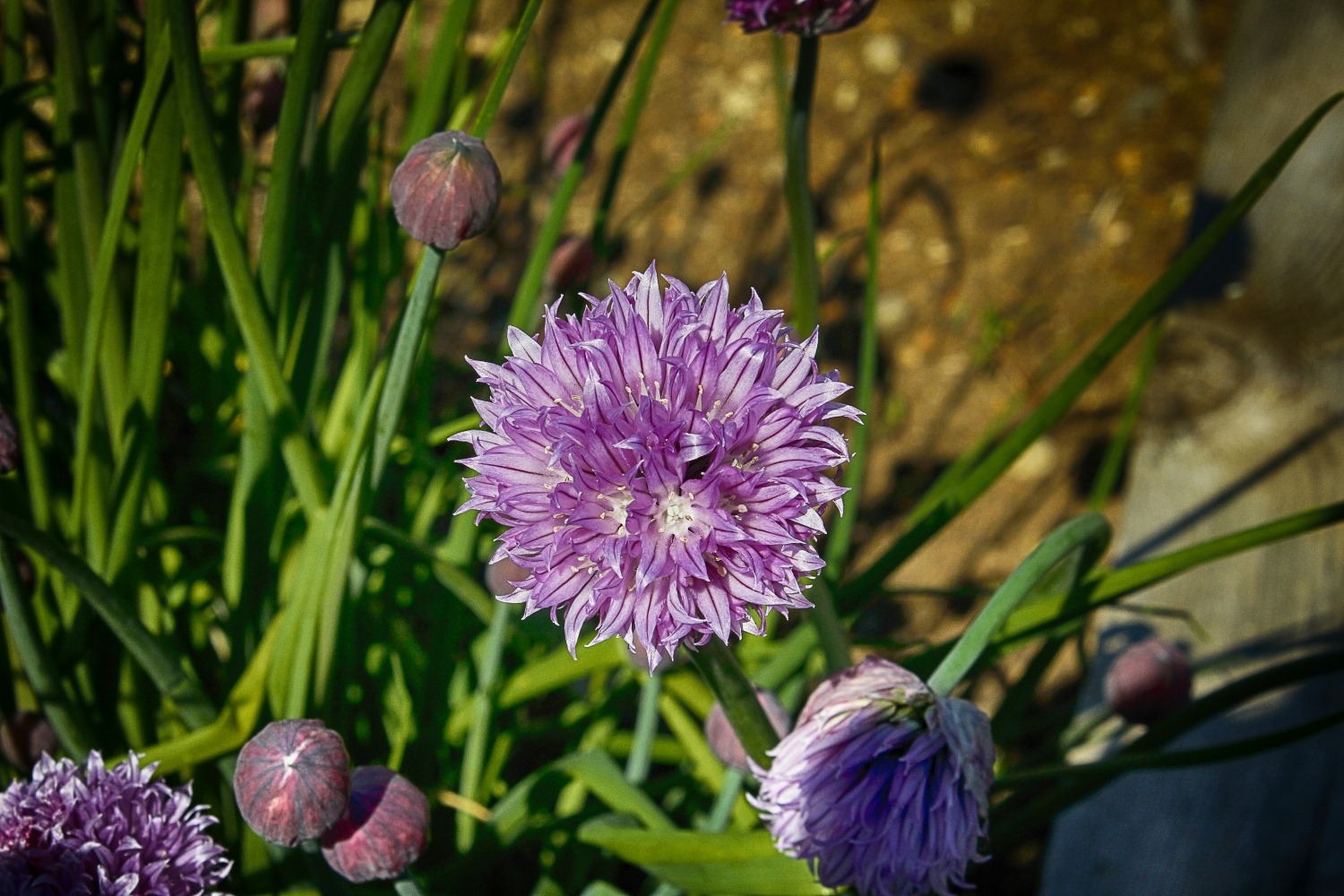 Some beautiful and tasty chives flowering in a corner of my veggie patch