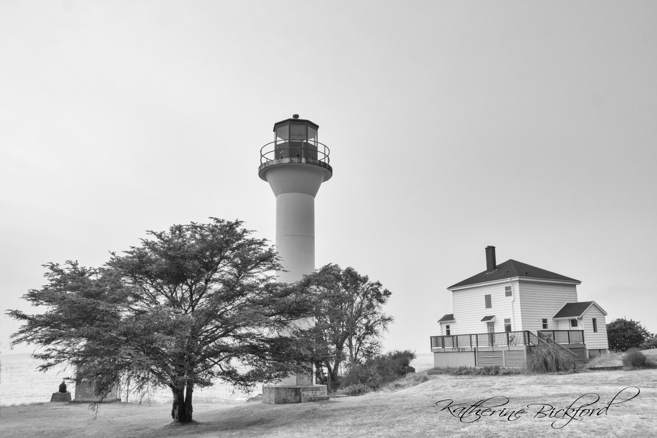The light station was built in 1885 to warn ships of the reefs and rough waters of Active Pass. The original 1885 lighthouse was replaced in 1940 by a square keeper’s dwelling surmounted by a lantern room. In 1969, a cylindrical concrete structure topped by a lantern and galley was constructed to serve as the lighthouse, but the square dwelling was retained to house the keeper. The modern tower has a focal plane of 17.5 metres and flashes a white light every ten seconds. The light can be seen up to 17 nautical miles away.