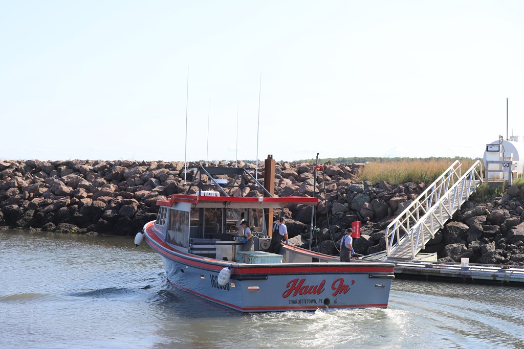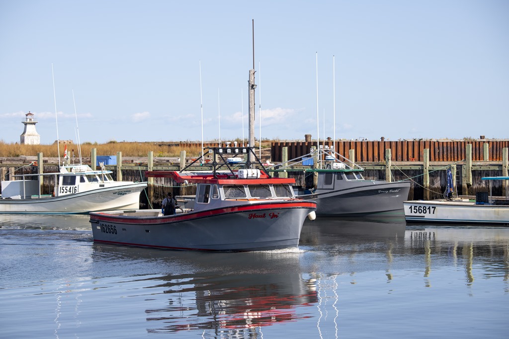 The fishing boat Haul In’ heading to the fuel dock in Cape Tormentine, New Brunswick