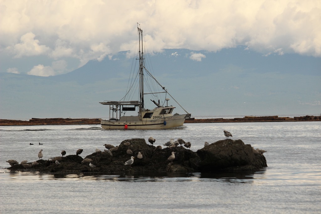 The fishing boat Interceptor IV heading past Clarke Rock on route to Nanaimo