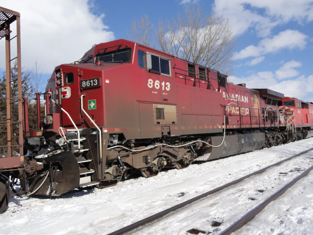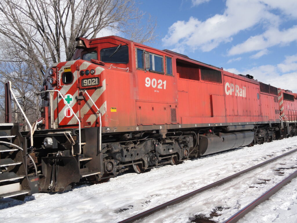 Canadian Pacific locomotives 5904, 6023, 8613, and 9021 on a snowy day in Trenton, Ontario. I do love trains and the such.