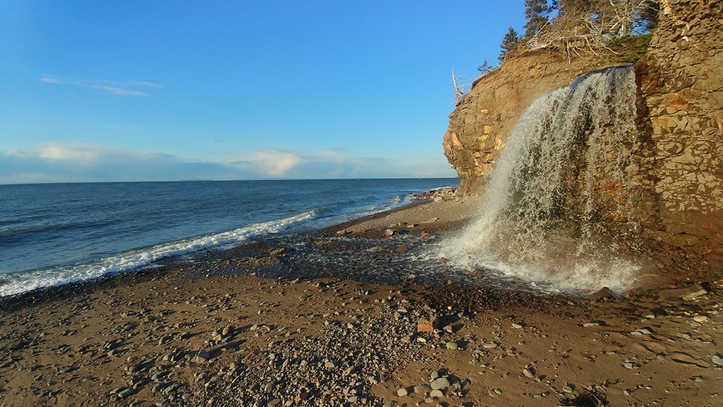 I’m not sure if this small waterfall is actually named Magaretsville Falls, but that’s what I am calling it as it is directly below Margaretsville United Church in Margaretsville . The waterfall drops onto the Bay of Fundy shoreline in a section that is named the saddle – just to the east of Margaretsville lighthouse.