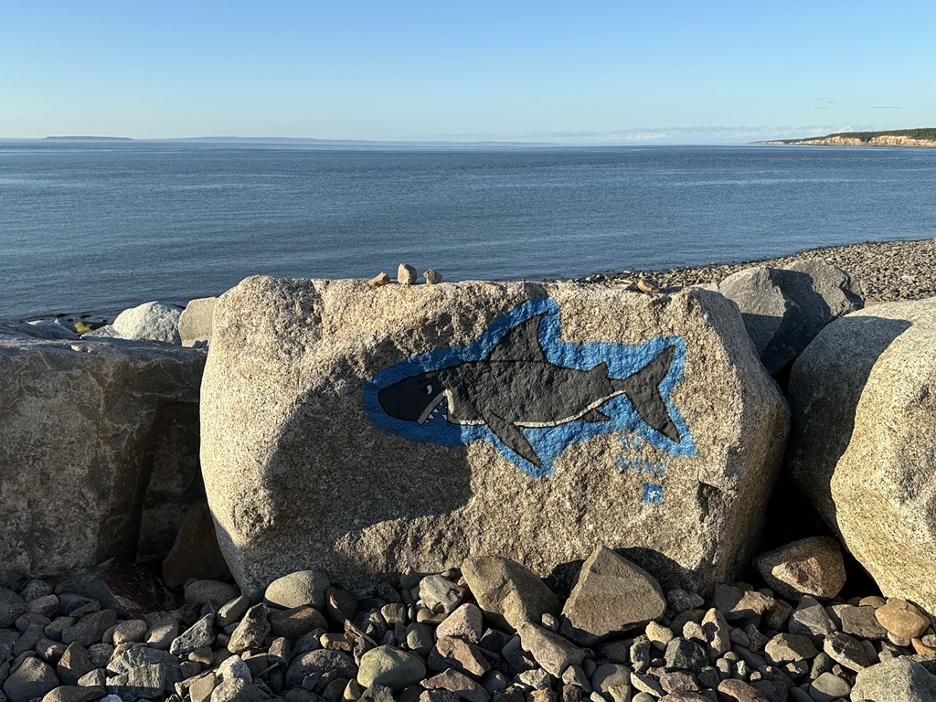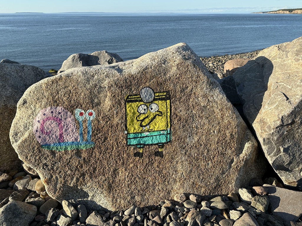 A daytime look at the artistry on the shoreline boulders in Margaretsville