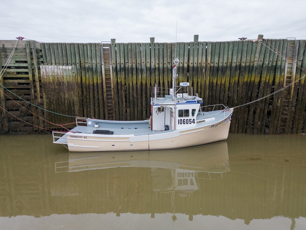 The fishing boat Megan & Boys in Chute Cove at low tide