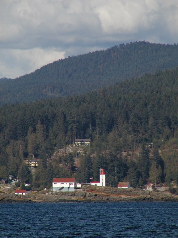 Merry Island Lighthouse marks the southeast entrance to Welcome Passage, between Thormanby Islands and the southwest side of Sechelt Peninsula.