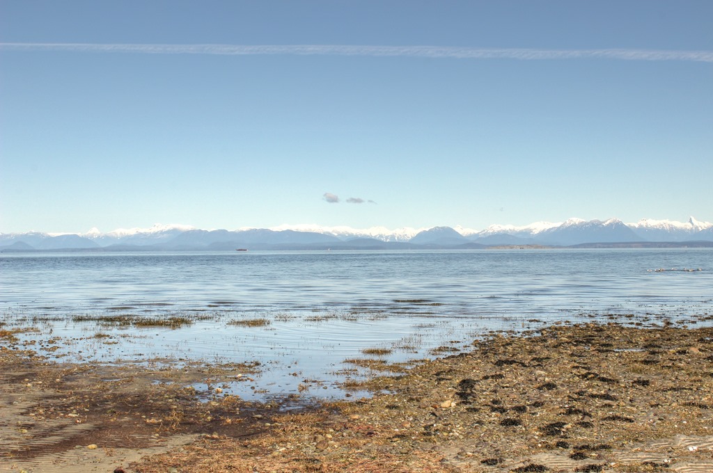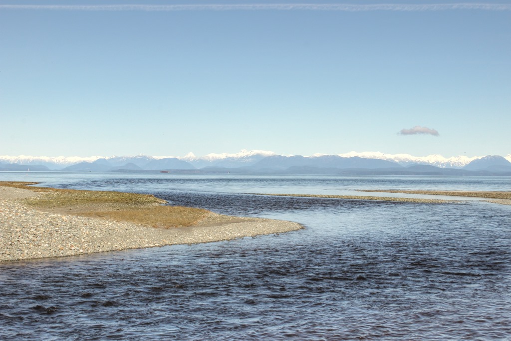 Looking across Georgia Strait from the Black Creek estuary at the northwest end of Miracle Beach Provincial Park,