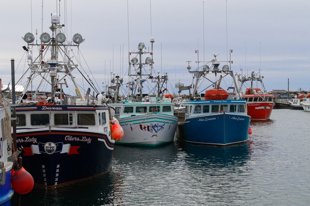 The fishing boats Oilers Lady, Secret Sea, Miss Lianne, and Shermanator I in Meteghan Harbour