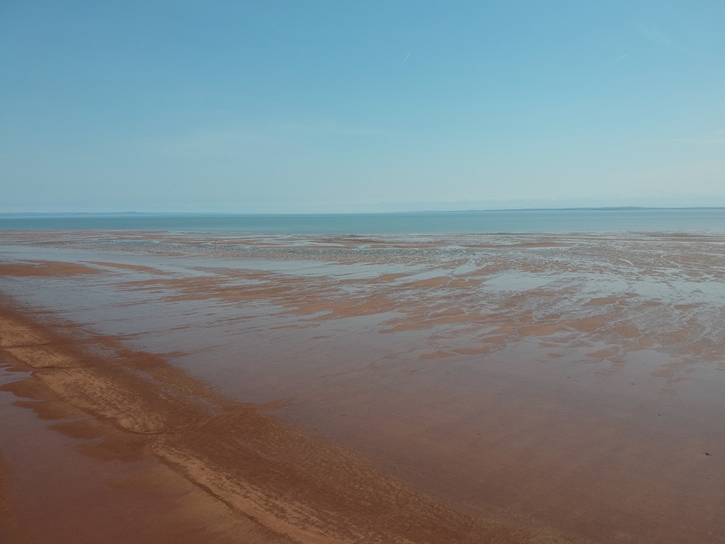A panoramic drone’s eye view of Houston’s (Heustis) Beach, near Blomidon Provincial Park, on the Minas Basin. I love the cliffs and the red mud ocean floor that extend out at low tides.