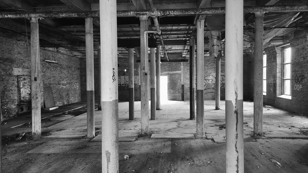 Pretty much all of the windows have been smashed or removed at the old Nova Scotia Textiles Limited factory in Windsor. There are great plans to renovate the building, but I suspect that it’s eventual use will be as used bricks.