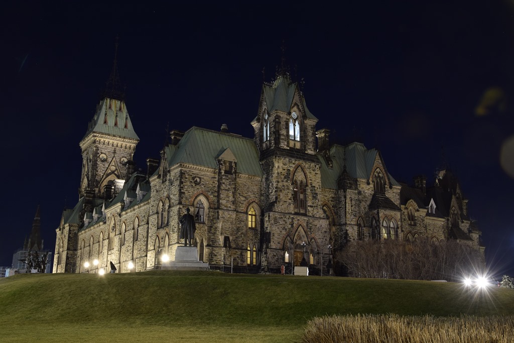 Night time at the East Block of the Parliament Buildings in Ottawa