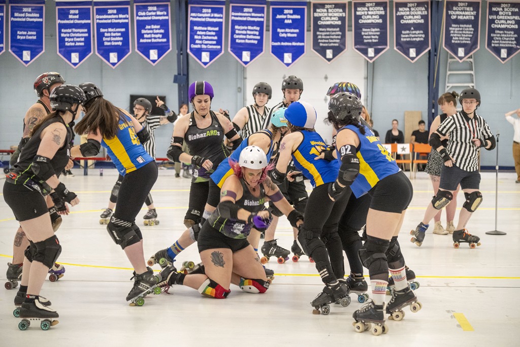 A few images from 25 May 2024 WFTDA roller derby game hosted in Halifax by the Anchor City Rollers
