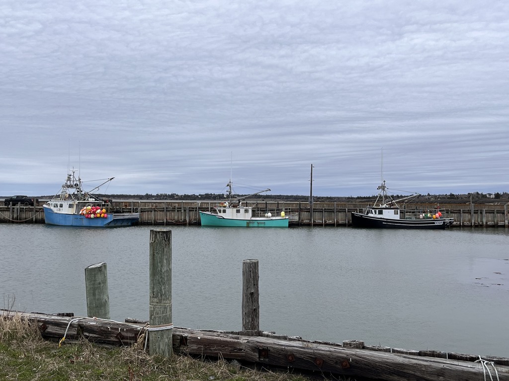 The fishing boats Never Ashore, Sea Level I, and Finally Here in Port Maitland