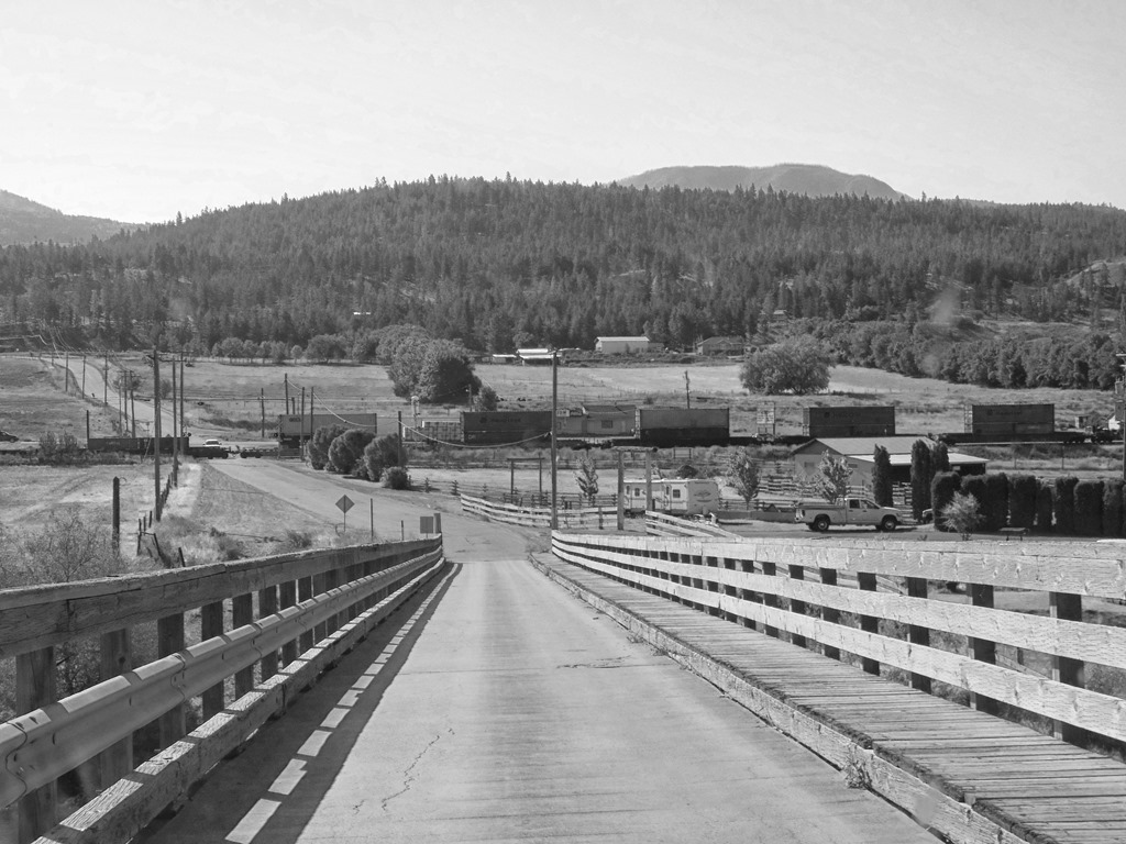 A train crossing Martin Prairie Road, near the Trans Canada Highway in Pritchard BC