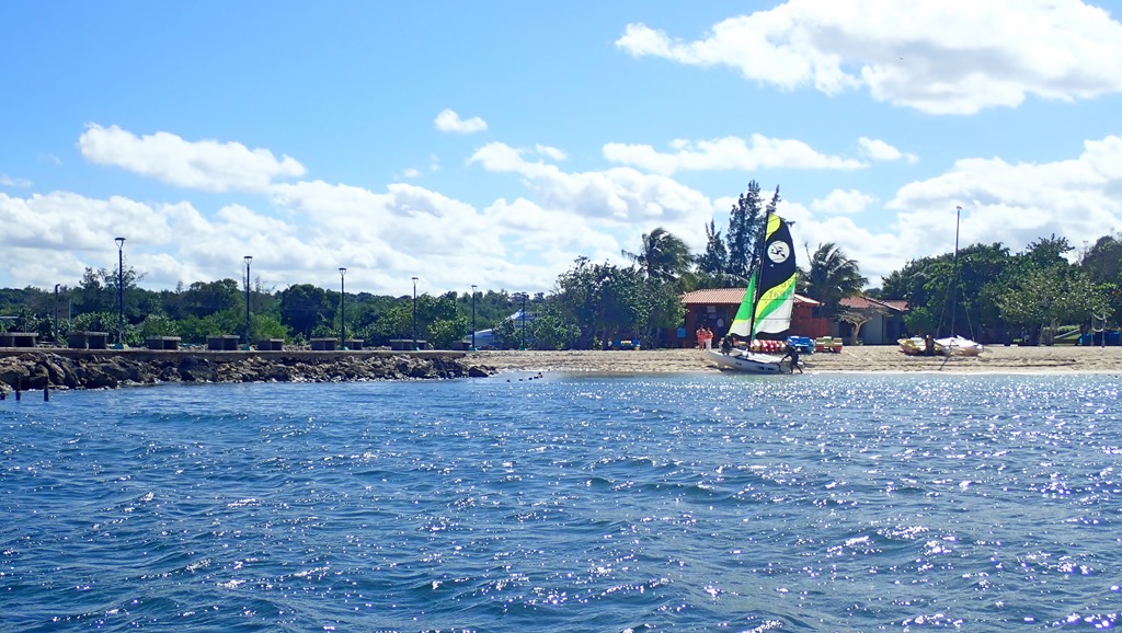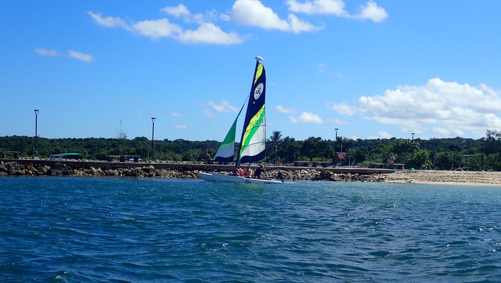 A Hobie 16 catamaran sailing off the playa in Guardalavaca