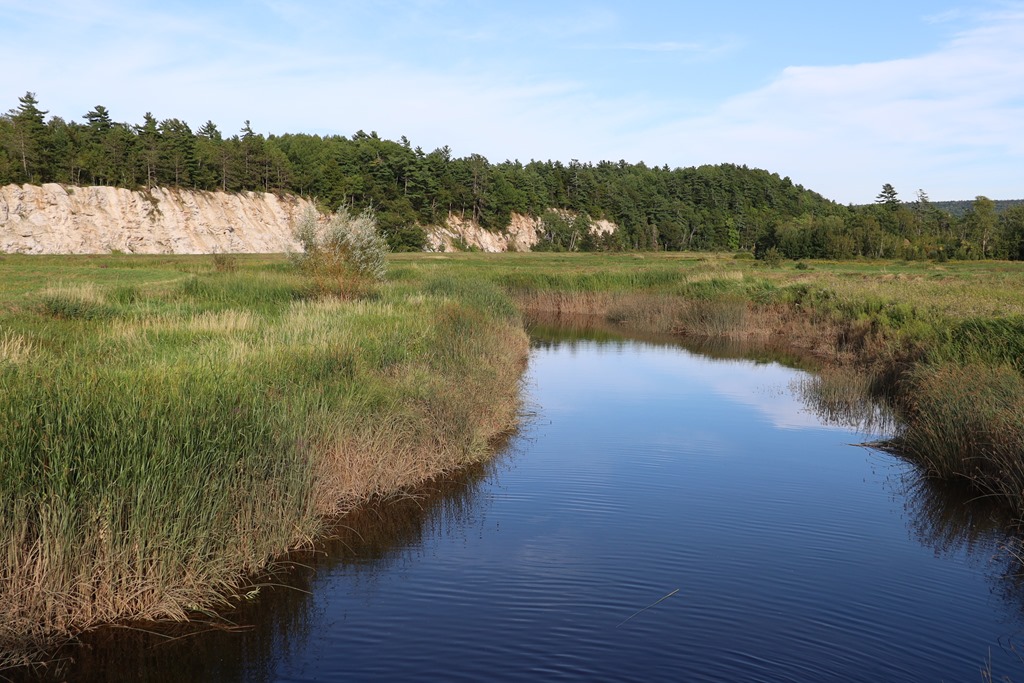 The flood plain of the lower tidal reaches of the St. Croix River is boarded by white limestone cliffs.