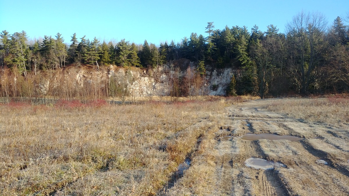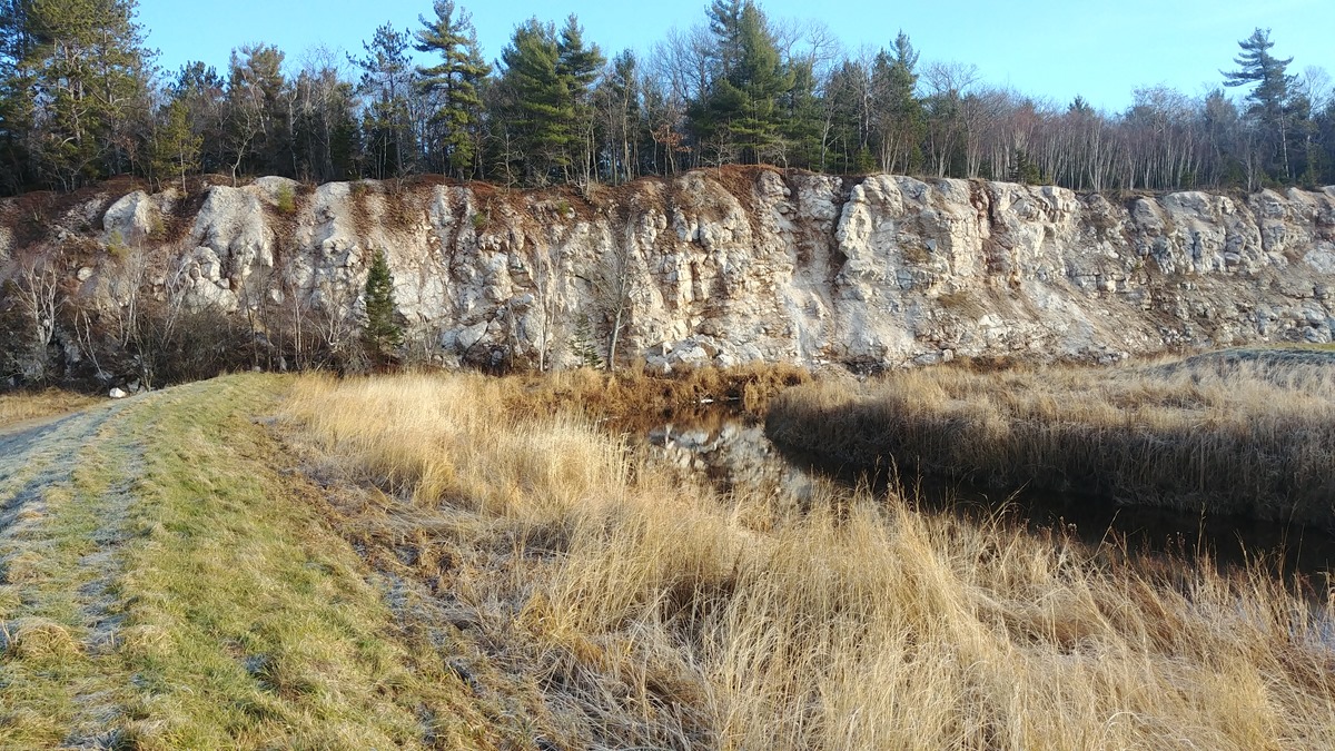 At first, I thought this was the St. Croix River and that the cliffs were exposed gypsum. Nope – this is actually Thumb Hill Creek and the cliffs are exposed limestone. My mistake was due to the highway crossing a river, with a place name of St.Croix River, and then assuming that this section was part of the St.Croix.