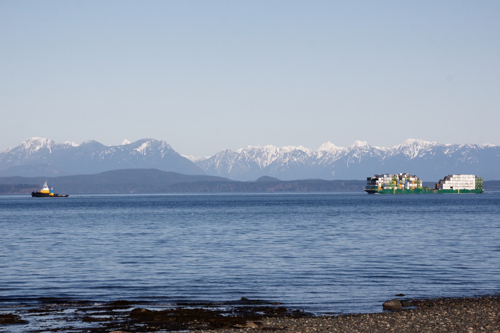 The tug boat Western Titian towing a barge through Discovery Passage